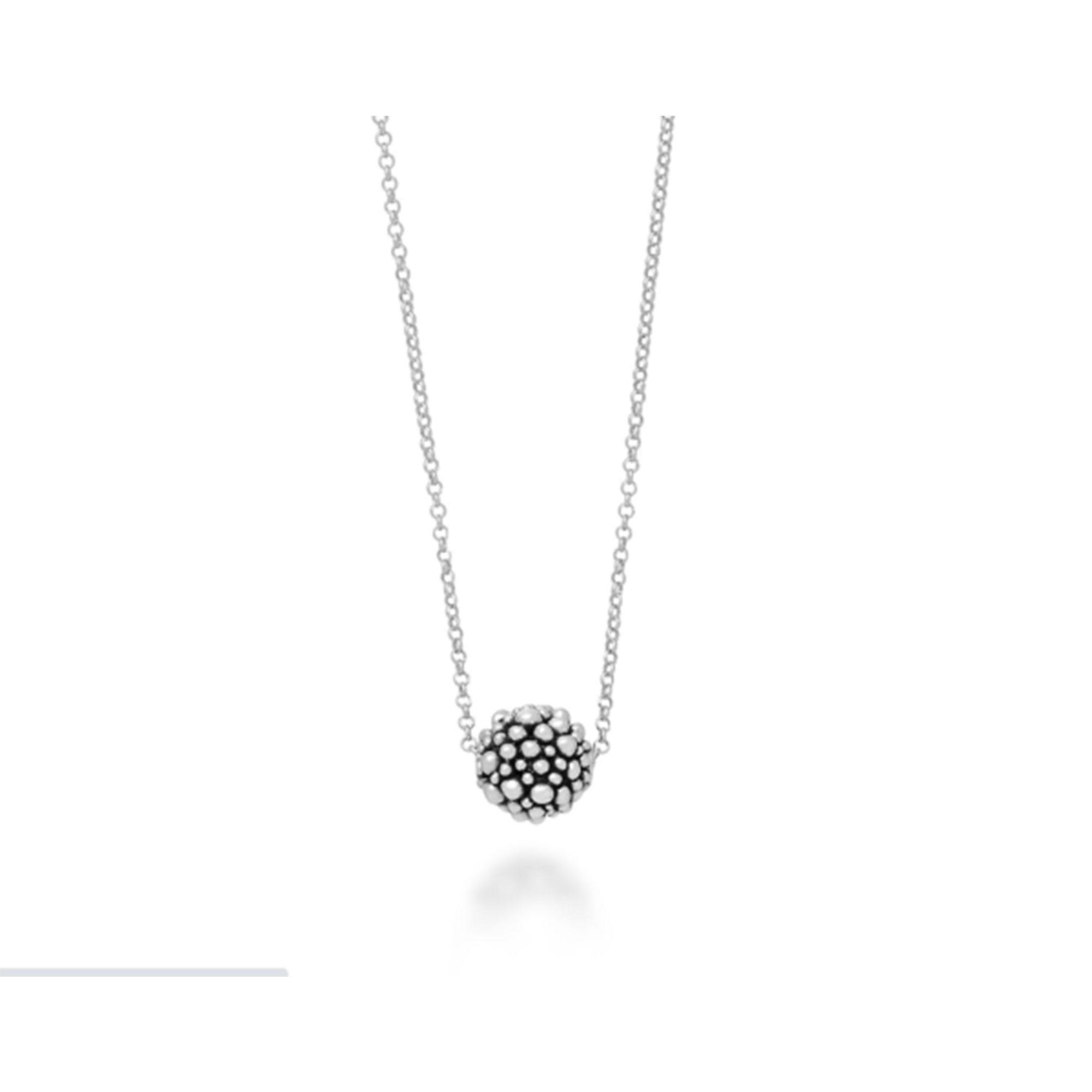 Leggerezza preziosa che si fa gioiello, argento contemporaneo per uno stile unico. Giovanni Raspini crea questa collana unendo una boule caratterizzata da infinite sferette luminose, ad una catena di 45 centimetri sempre in argento. Realizzata a mano in azienda.